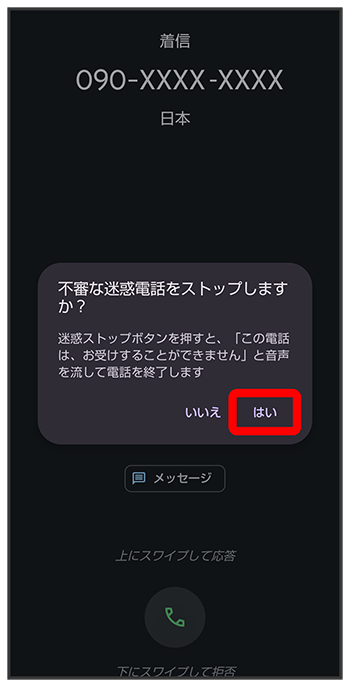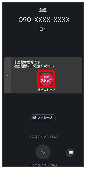 不明な相手の電話を「迷惑ストップ」ボタンでお断りする