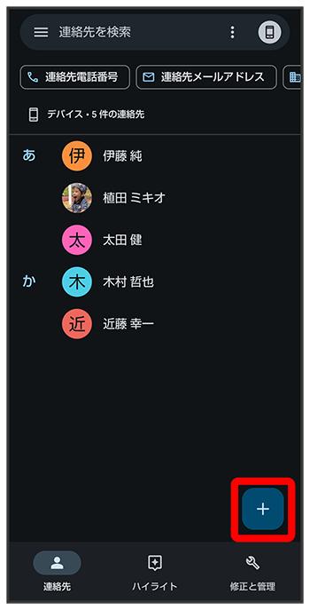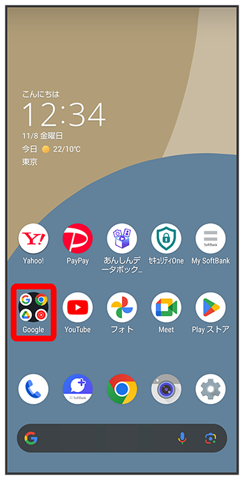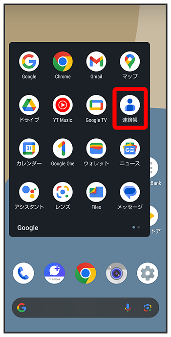 次の操作を行うと、サーバーに保存されたGoogleの連絡先と本機の電話帳を同期できます。Google アカウント以外と同期するときでも、あらかじめ、Google アカウントでログインしておいてください。