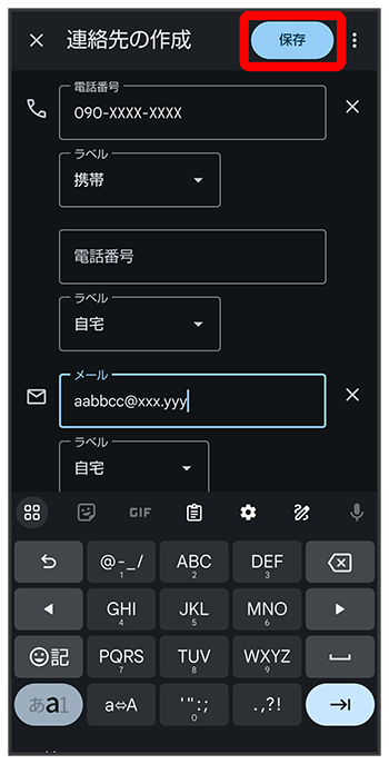 )が切り替わります。 - 新しい連絡先の作成画面でラベル名を入力と操作すると、新しいラベルを追加できます。