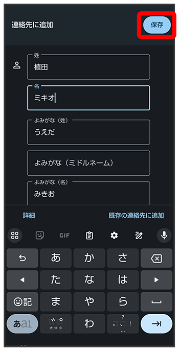 - 追加したい連絡先を入力表示された連絡先をタップと操作すると、既存の連絡先へ追加することができます。