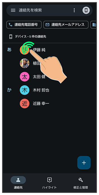 対象の連絡先をロングタッチ(