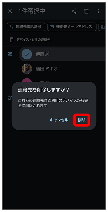 連絡先が削除されます。