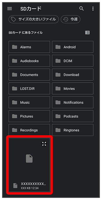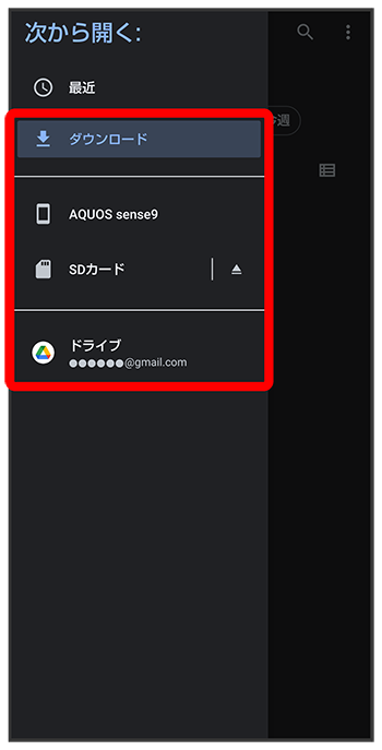 - バックアップしたデータが表示されている場合は、内部ストレージ/SDカードからバックアップデータを選択し、手順