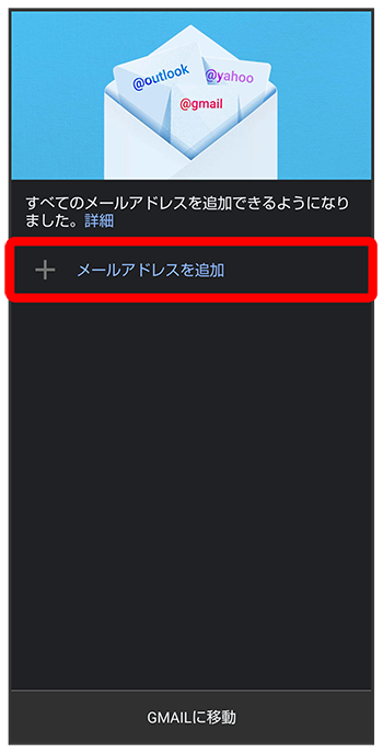 (Gmail)を起動すると、アカウント設定画面が表示され、設定操作を行うことができます。