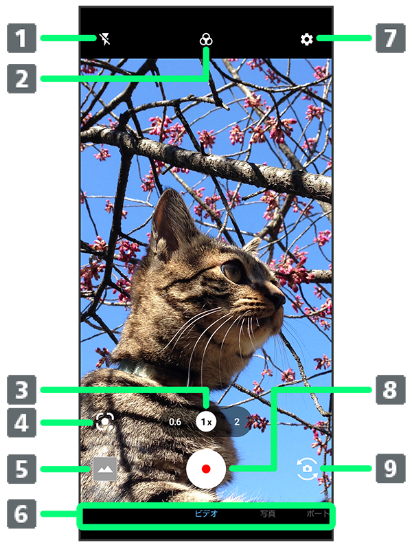 モバイルライトの設定を切り替えます。 - ビデオフィルター