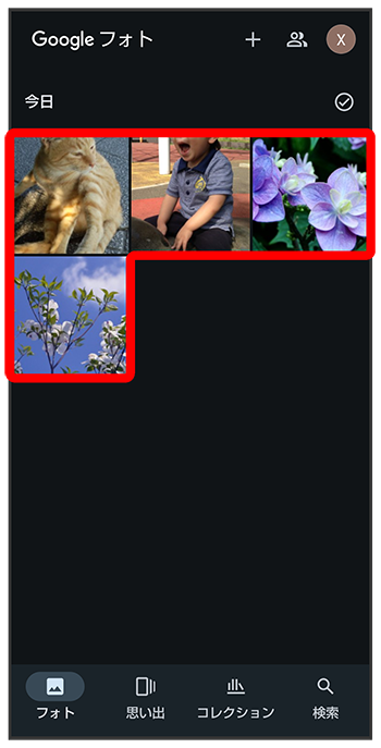 フォト画面でと操作すると、移動した写真や動画を確認できます。また、フォト画面でこちらで検索できます