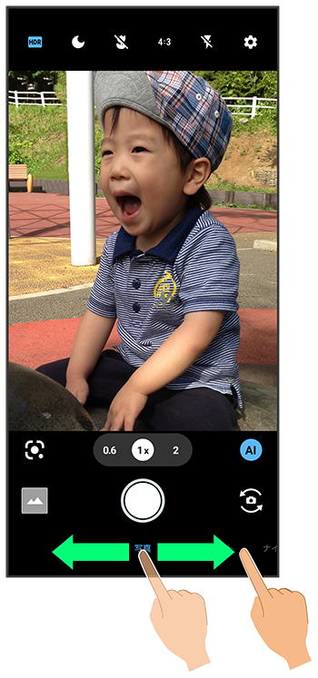 - 撮影画面を左右にドラッグしても、撮影モードが切り替わります。