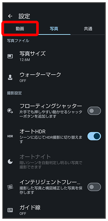 | AIライブシャッター | AIライブシャッターを利用するかどうかを設定します。 有効のときに動画を撮ると、AIが人物や犬、猫などを認識したり、構図を判断して、自動で写真を撮ります。 |