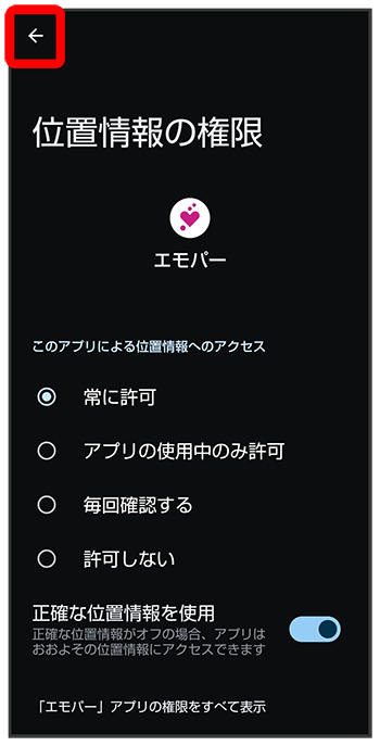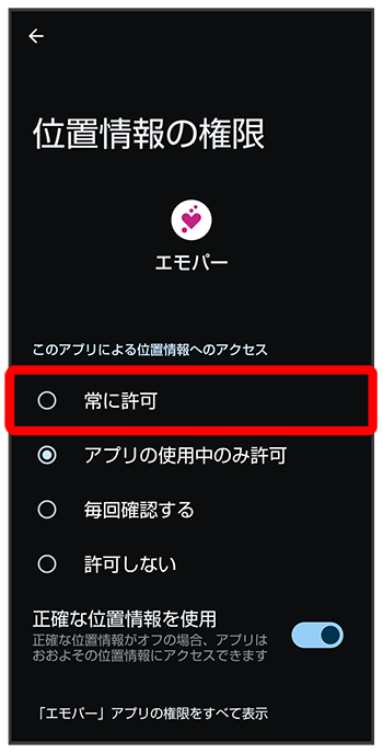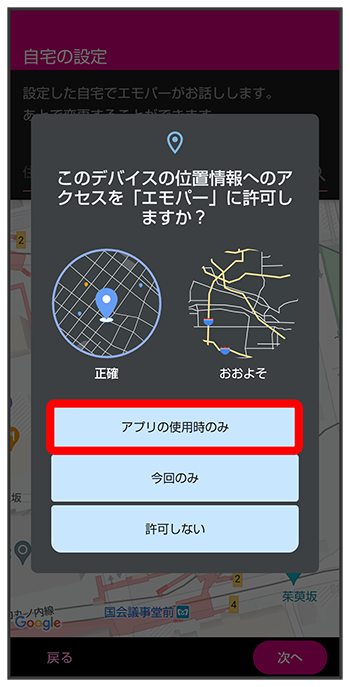 - 正確な位置情報の利用を許可するときはを、おおよその位置情報の利用を許可するときはを選択してください。