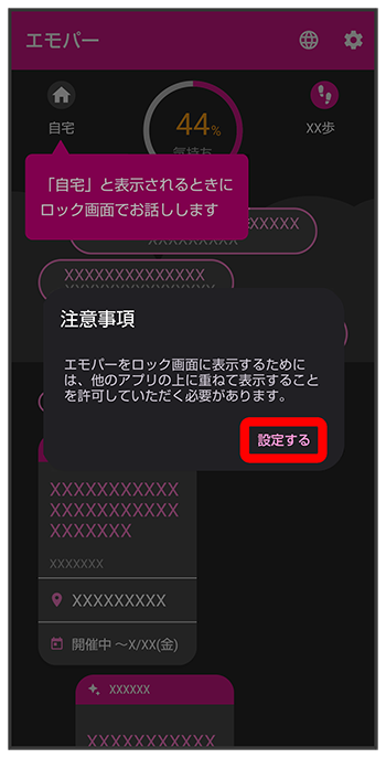 )が切り替わります。を許可すると、通知機能の詳細設定ができます。画面に従って操作してください。 - 確認画面が表示されたときは、画面に従って操作してください。
