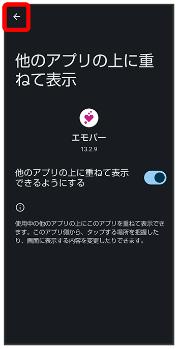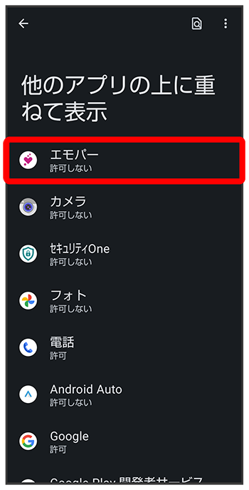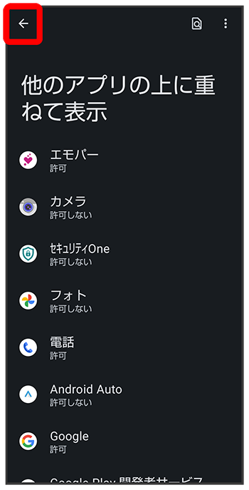 - 通知機能の場合は、アプリ名をタップしたあと、をタップするたびに、許可(