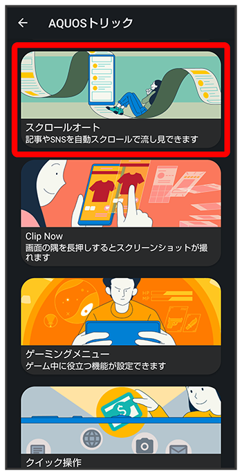スクロールオート画面が表示されます。