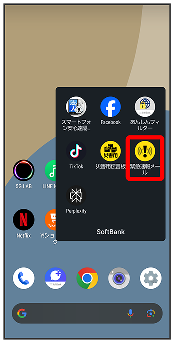 ホーム画面で緊急速報メールを利用するかどうかを設定する