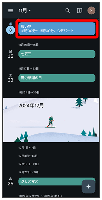 カレンダー画面で、月部分をタップ表示させたい日をタップこちらで検索できます