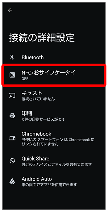 NFC/おサイフケータイ®設定画面で/こちらで検索できます
