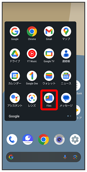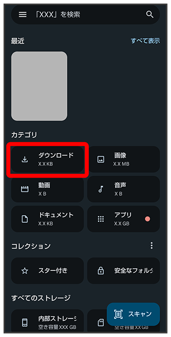 ダウンロード画面で、ファイルをロングタッチ- リスト表示でファイル名の右の