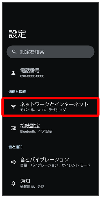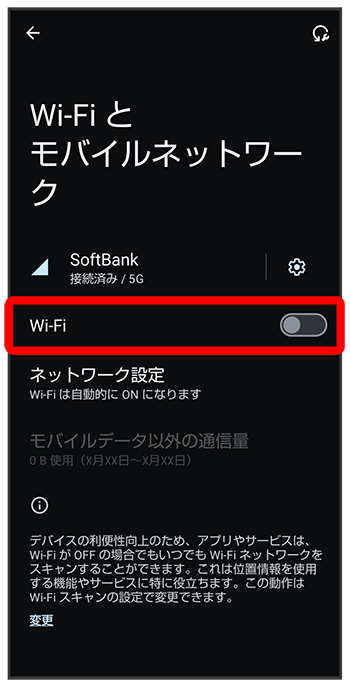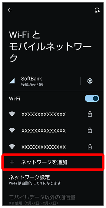Wi-Fiとモバイルネットワーク画面が表示されます。