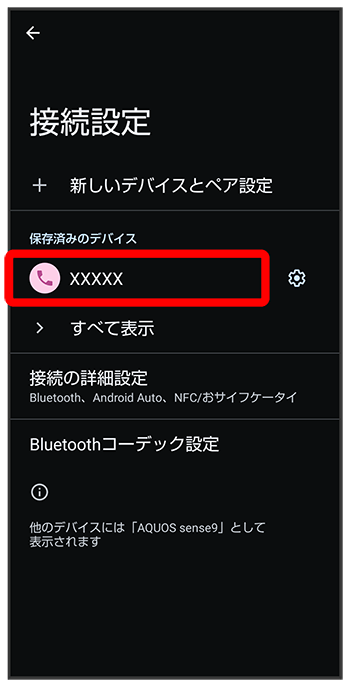 接続設定画面で、ペア設定を解除する機器のこちらで検索できます