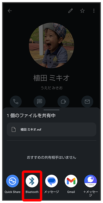 連絡帳画面で連絡先をロングタッチ送信したい連絡先をタップ(