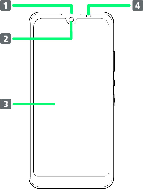 | 近接/明るさセンサー1 | 近接センサーは通話中にタッチパネルの誤動作を防ぎます。明るさセンサーは周囲の明るさに合わせて、ディスプレイの明るさを調節します。 |