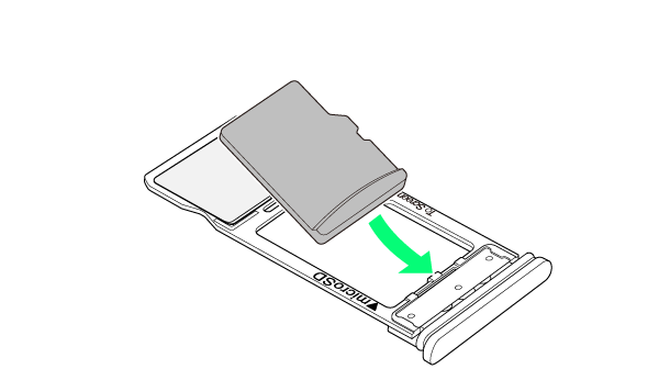 - ディスプレイを上にして、カードトレイを引き出してください。ディスプレイを下にしたり、本機を立てた状態でカードトレイを引き出すと、SIMカードやSDカードがカードトレイから外れ、紛失する可能性があります。