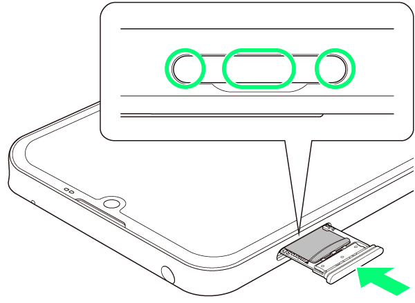 SIM/SDカード挿入口に、カードトレイを差し込む