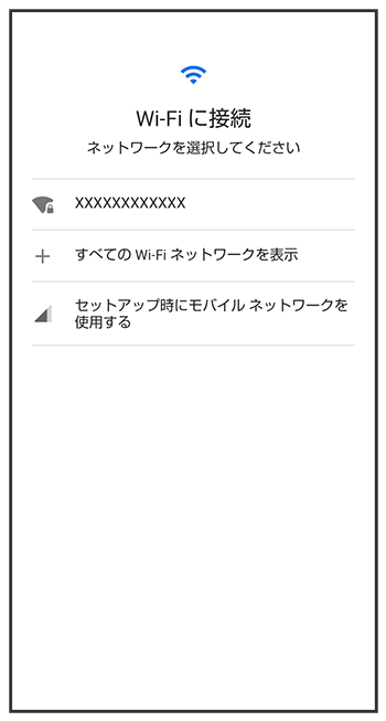 - モバイルネットワークを使用して初期設定を行うときは、を選択します。以降は、画面に従って操作してください。