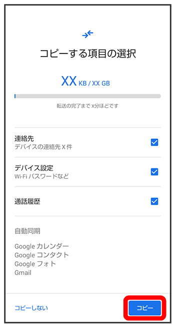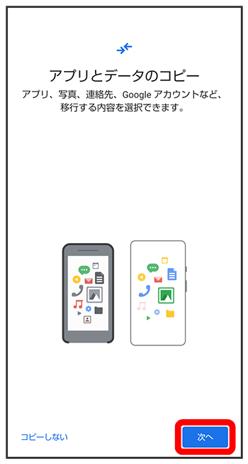 - ほかの端末などからデータをコピーしないときは、をタップします。