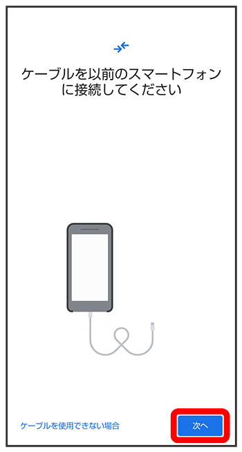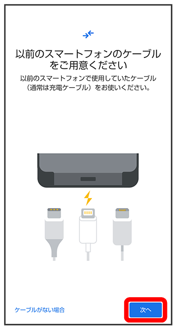 - これまでお使いのスマートフォンのケーブルがない場合は、をタップして、画面に従って操作してください。