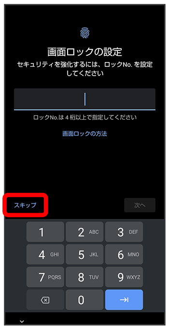 - 画面ロック解除方法を設定するときは、ロックNo.(PIN)を入力してください。詳しくは、「ロックNo.(PIN)で画面ロックを解除するように設定する」を参照してください。