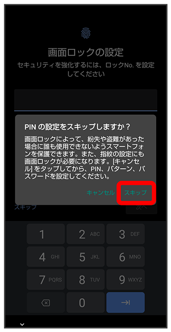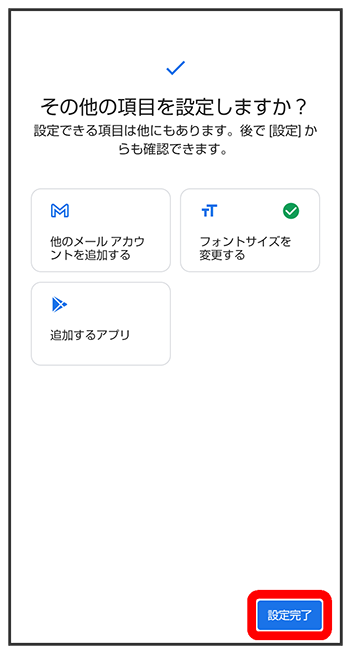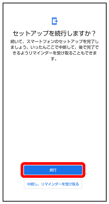 - 初期設定を中断し、あとでリマインダーを受け取るときは、をタップします。