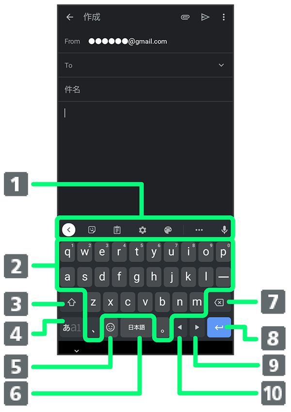 - 表示するアイテムを変更することもできます。詳しくは、「ツールバーについて(Gboard)」を参照してください。