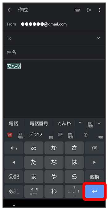 をタップしたあと、次の文字を入力します。入力した文字の背景色が変わったあとは、そのまま次の文字が入力できます。 - キーをくり返しタップせず、キーをロングタッチしたときに表示されるキー入力ガイドを利用して文字を入力することもできます。詳しくは、「フリック入力について」を参照してください。