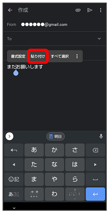 貼り付ける文字をタップしても、貼り付けできます。あらかじめクリップボードを有効にしてください。アプリによっては、利用できないことがあります。