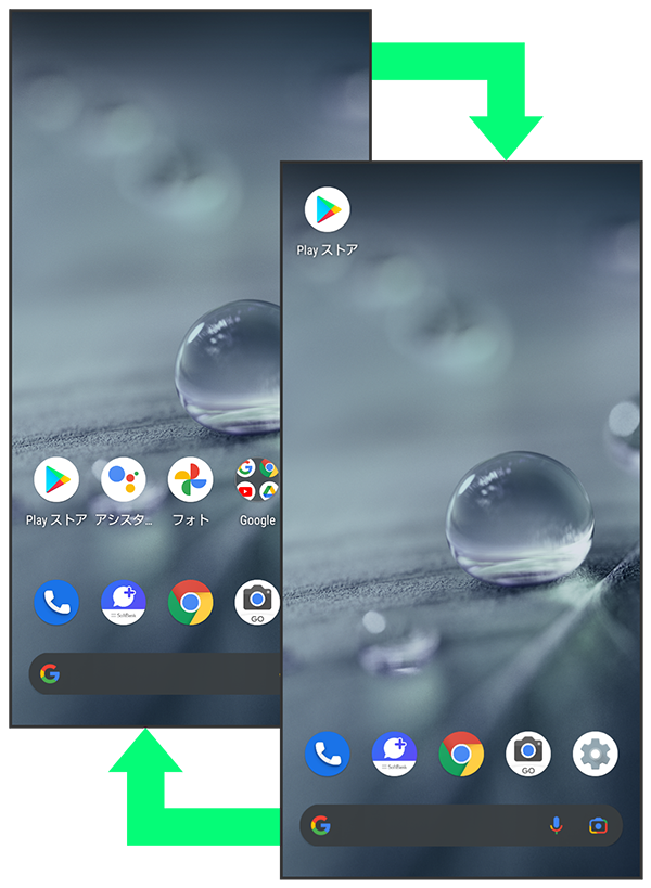 ホーム画面シートが複数あるときは、ホーム画面を左右にフリックすると、ホーム画面シートを切り替えることができます。
