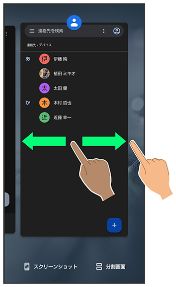 アプリの履歴を左右にドラッグして、操作したいアプリの履歴を選択