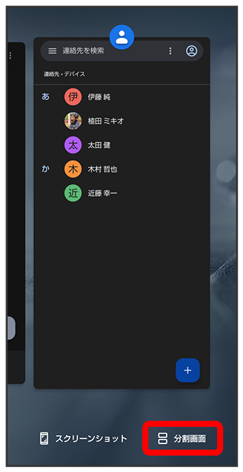 本機の表示画面を分割し、2つのアプリを表示、操作できます。