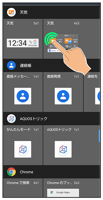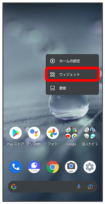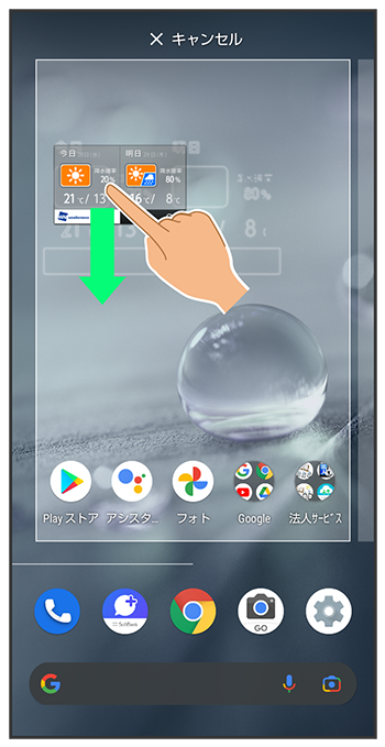ホーム画面でウィジェットをロングタッチ「削除」までドラッグ