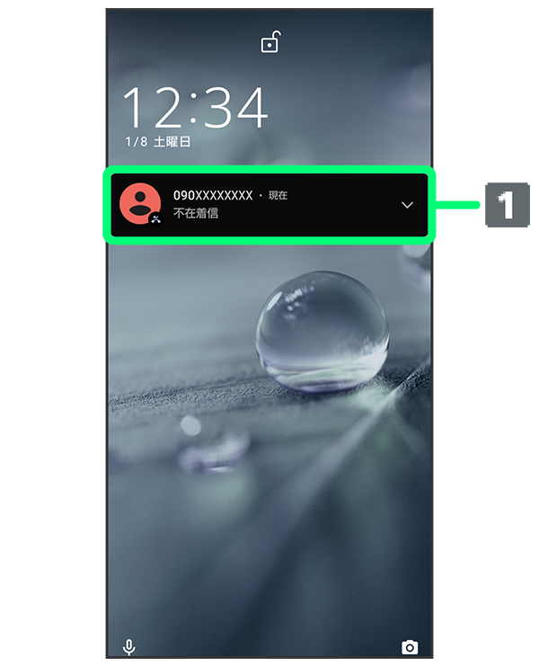 着信中に電話を受けられなかったときは、ロック画面に通知が表示されます。