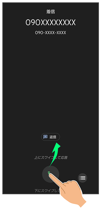 着信中に送信するメッセージをタップ- 画面ロックを解除しているときは、送信するメッセージをタップします。