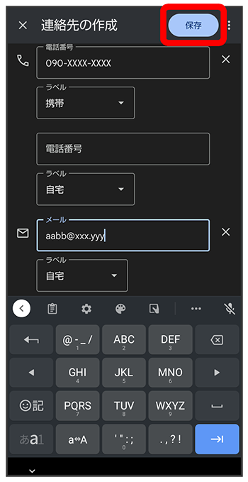 )が切り替わります。 - 新しい連絡先の作成画面でラベル名を入力と操作すると、新しいラベルを追加できます。