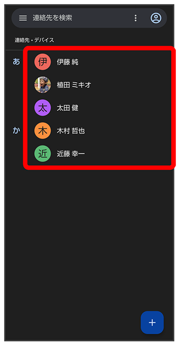 )が切り替わります。 - お気に入りに登録された連絡先は、連絡帳画面の上部に表示されます。