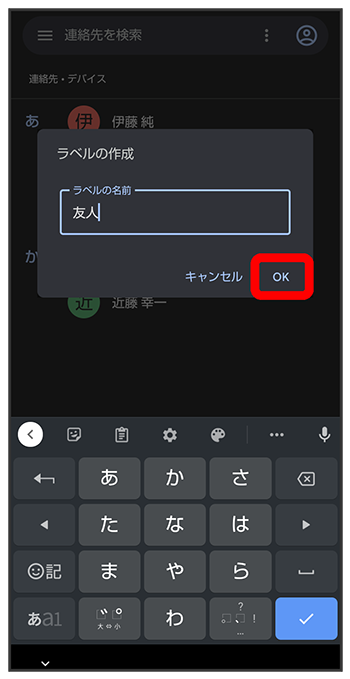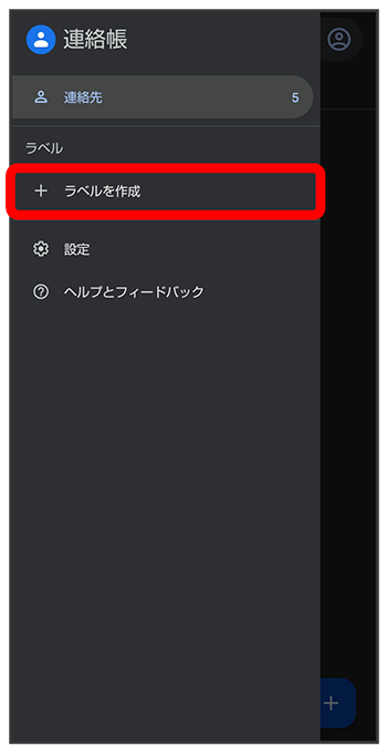 (電話)と操作して表示した連絡先画面では、ラベルの登録はできません。