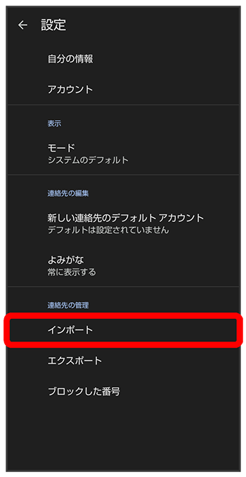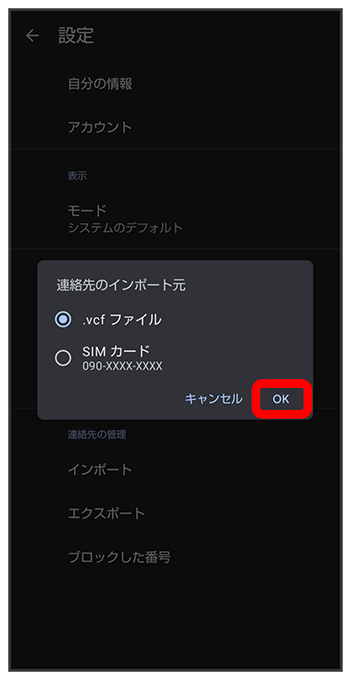 SDカードから電話帳データを読み込む