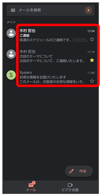- メール一覧画面で、削除するメールのアイコンをタップ(