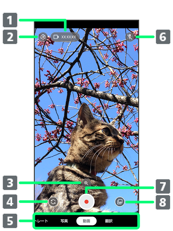 タップしてモバイルライトの/を切り替えます。 - 動画撮影