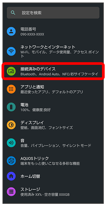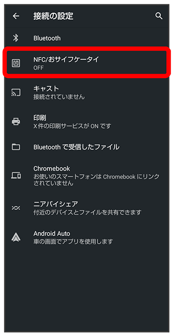 NFC/おサイフケータイ®設定画面で/こちらで検索できます
