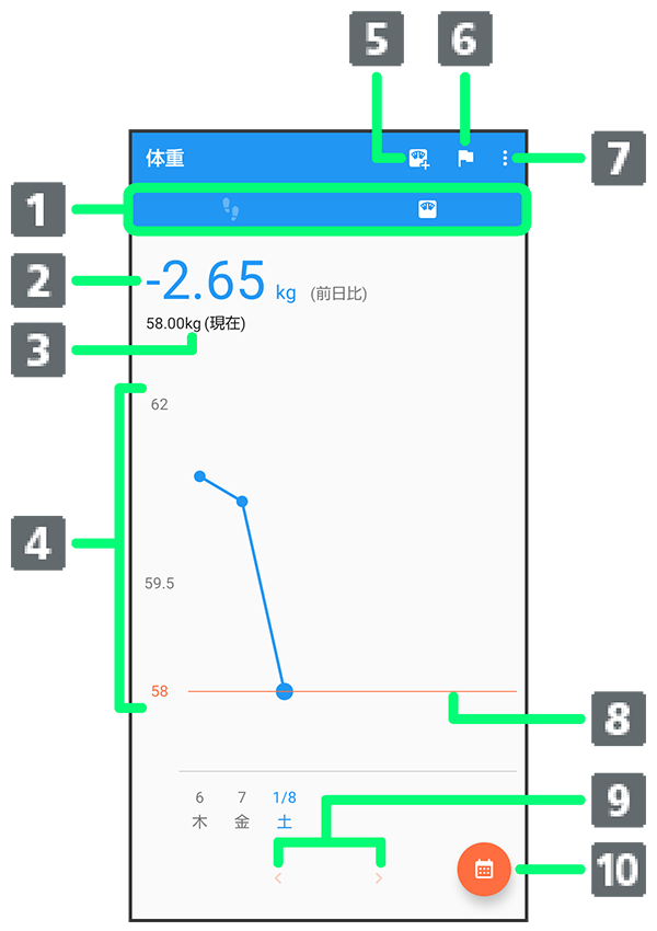 - 歩数タブ/体重タブ1