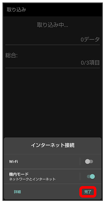 内部ストレージの空き容量が少なくなっているときは取り込めません。また、電池残量が不足しているときは、操作が中止されます。電池残量が十分あるときに操作することをおすすめします。