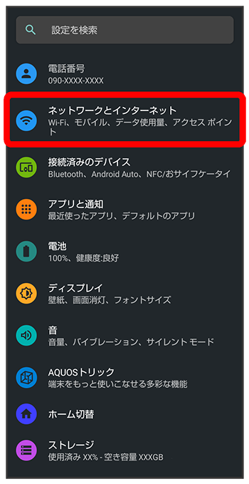 )が切り替わります。 - データセーバーについて詳しくは、「ネットワークとインターネット」を参照してください。